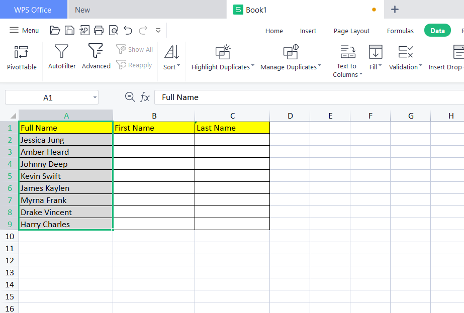 Ahora, empieza a escribir los nombres y apellidos en las filas siguientes. Por ejemplo, en la celda A2 escribe el primer nombre y en la celda B2 el apellido correspondiente. Repite este proceso para cada persona que quieras agregar a tu lista.
